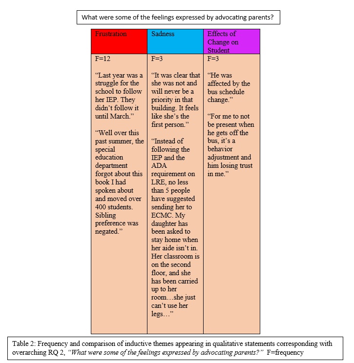 - What were some of the feelings expressed by advocating parents?